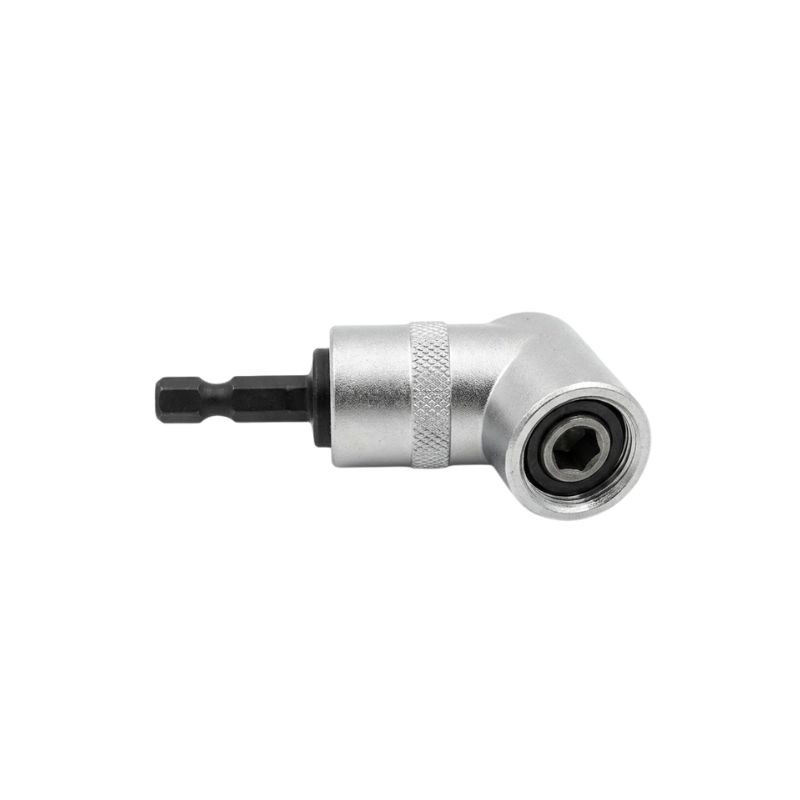 Praktikus, 105 fokos szögben hajlított csavarozó adapter, amely nélkülözhetetlen a szűk, nehezen hozzáférhető helyeken végzett munkákhoz. Segítségével könnyedén behajthat csavarokat sarkokban vagy bútorok belsejében, ahová a fúrógép teste már nem férne be.