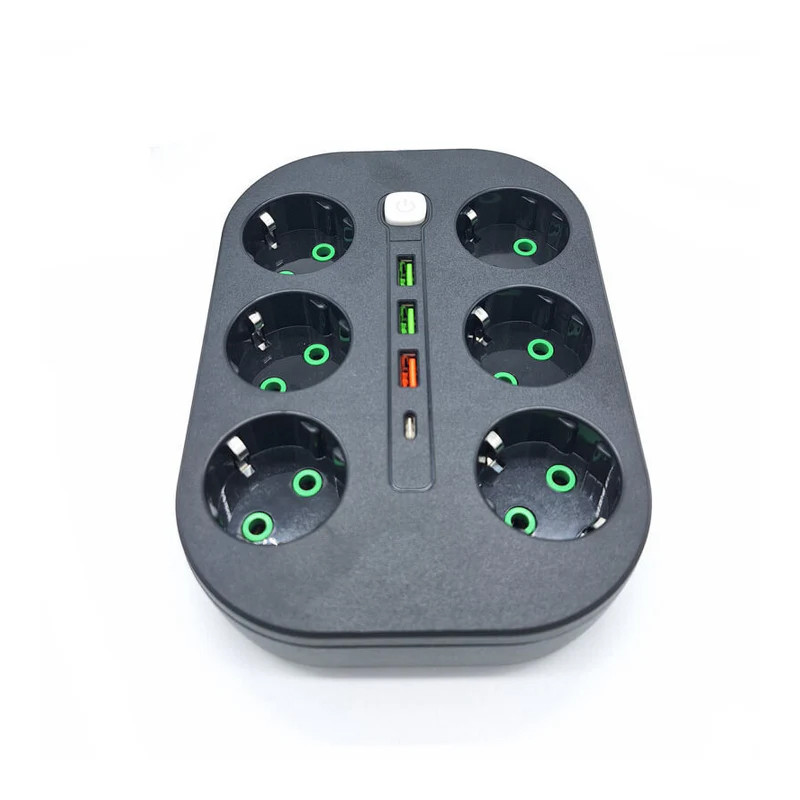 Töltse fel eszközeit könnyedén, és élvezze a modern technológia előnyeit! Ez a hálózati elosztó, a hatékonyság és a kényelem tökéletes elegye. További három USB, és egy USB-C kimenettel is rendelkezik, így egyszerre tölthet fel vele telefonokat, táblagépeket, PowerBankokat vagy akár laptopokat is. Így mindig biztosítva van a hatalmas eszközparkodnak az energiaellátás.A biztonságot és a megbízhatóságot szem előtt tartva, az elosztó maximális egyidejű teljesítmény átadása akár 2500 W lehet.