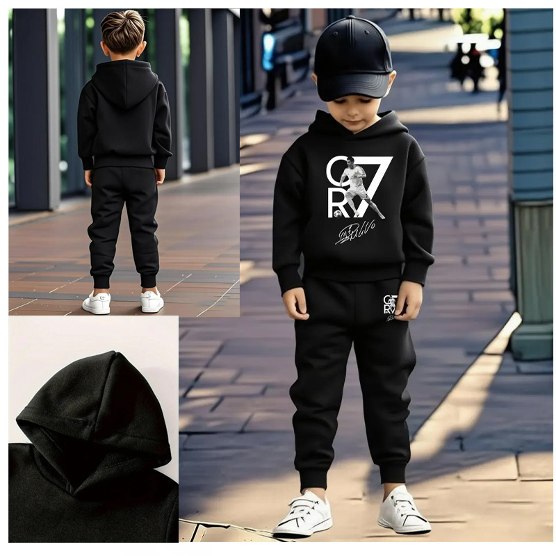 Ez a CR7 kapucnis melegítőszett remek választás minden fiatal focirajongó számára, akik kedvenc játékosuk stílusát szeretnék viselni a hétköznapokban is.