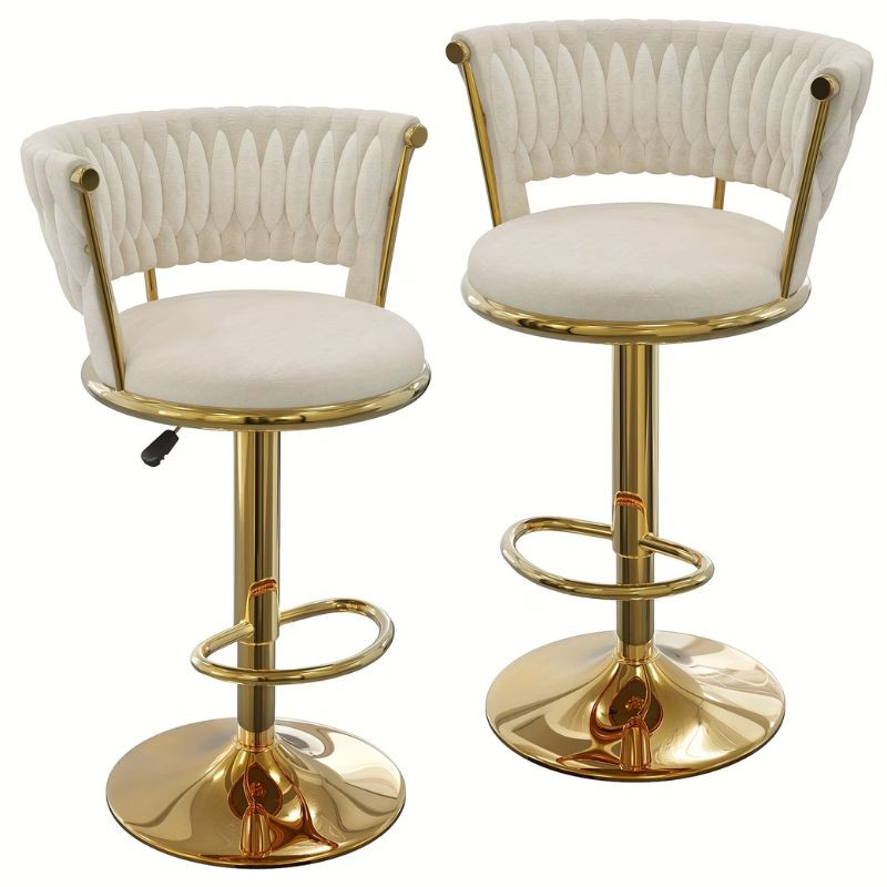 Prémium megjelenésű bárszék szett, amely tökéletes választás modern konyhákba, bárpultokhoz vagy kávézókba. A krémszínű, puha kárpitozás és az arany színű fém váz kombinációja exkluzív, luxus hatást kelt.