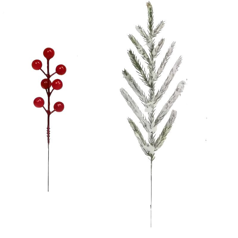 30 db mű fenyőág és piros bogyó dekoráció TJ9156439
