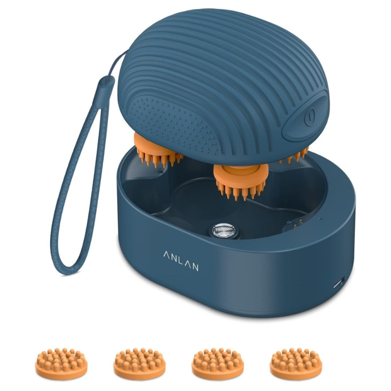 Az ANLAN elektromos fejbőrmasszírozó mély és kellemes masszázst biztosít a fejbőr számára, segít enyhíteni a feszültséget és támogatja a relaxációt. A készülék két egységben elhelyezett masszírozó fejekkel dolgozik, amelyek összesen nyolc puha szilikon masszírozó ponttal biztosítanak teljes 360°-os masszázsélményt. A masszázs segíti a fejbőr vérkeringését, hozzájárulhat a haj egészségesebb növekedéséhez, valamint csökkentheti a stresszt és a fejfájást.