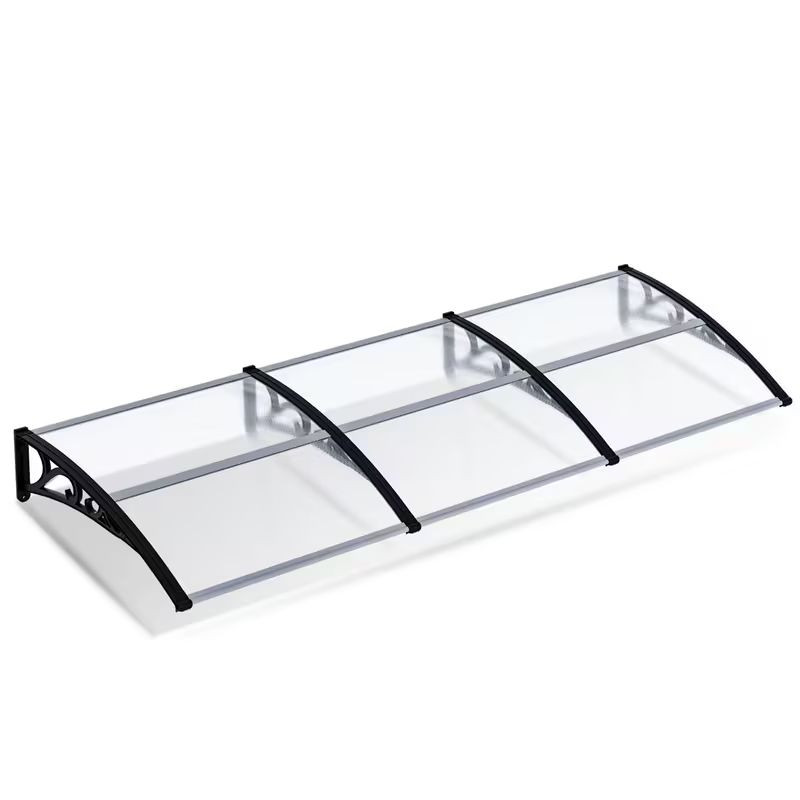 Ez a nagyméretű, 3 méter széles előtető kiváló megoldást nyújt bejárati ajtók, szélesebb ablakok, kirakatok vagy kültéri klímaegységek védelmére. Az átlátszó polikarbonát panel nem árnyékolja le a bejáratot, így megőrzi a természetes fényviszonyokat, miközben hatékonyan óv az esőtől, hótól és a káros UV-sugárzástól. A modern, ívelt kialakítás nemcsak esztétikus, hanem funkcionális is, mivel segíti a csapadék gyors elvezetését.