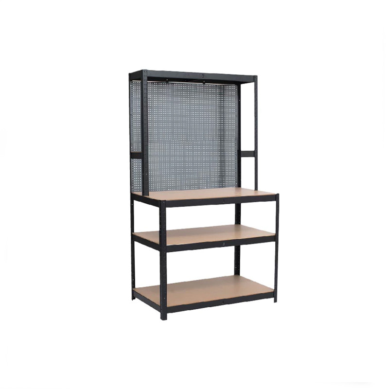 Munkaasztal szerszámfallal, 3 polccal és 1 asztallappal