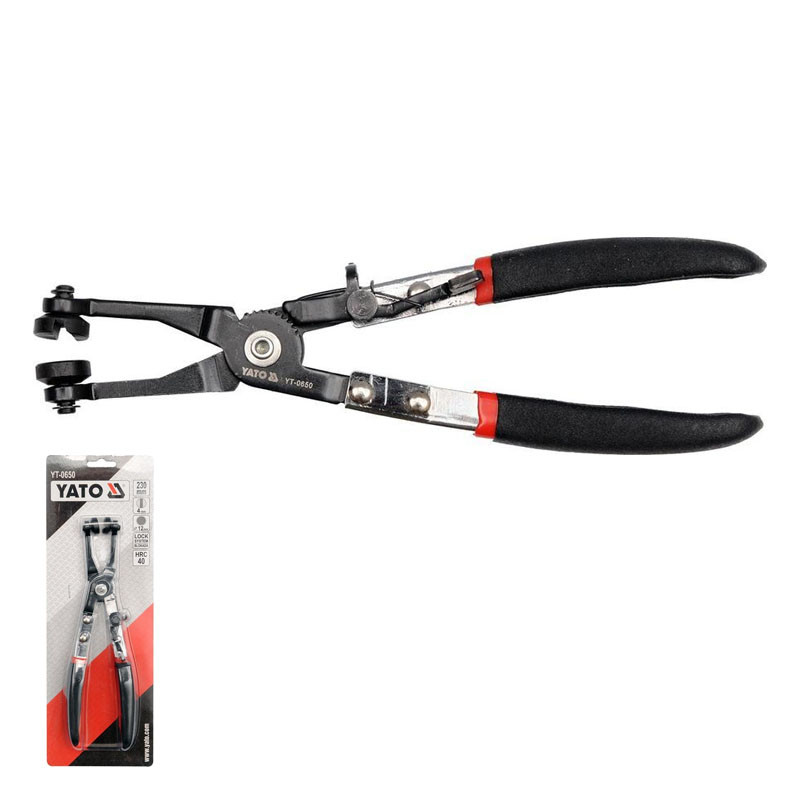 Önzáró mechanizmussal ellátott csőbilincs-fogó, amely megkönnyíti a különböző típusú bilincsek biztonságos rögzítését és eltávolítását. Kiváló minőségű acélból készült, 40 HRC keménységgel, ami hosszú élettartamot és megbízható használatot biztosít.