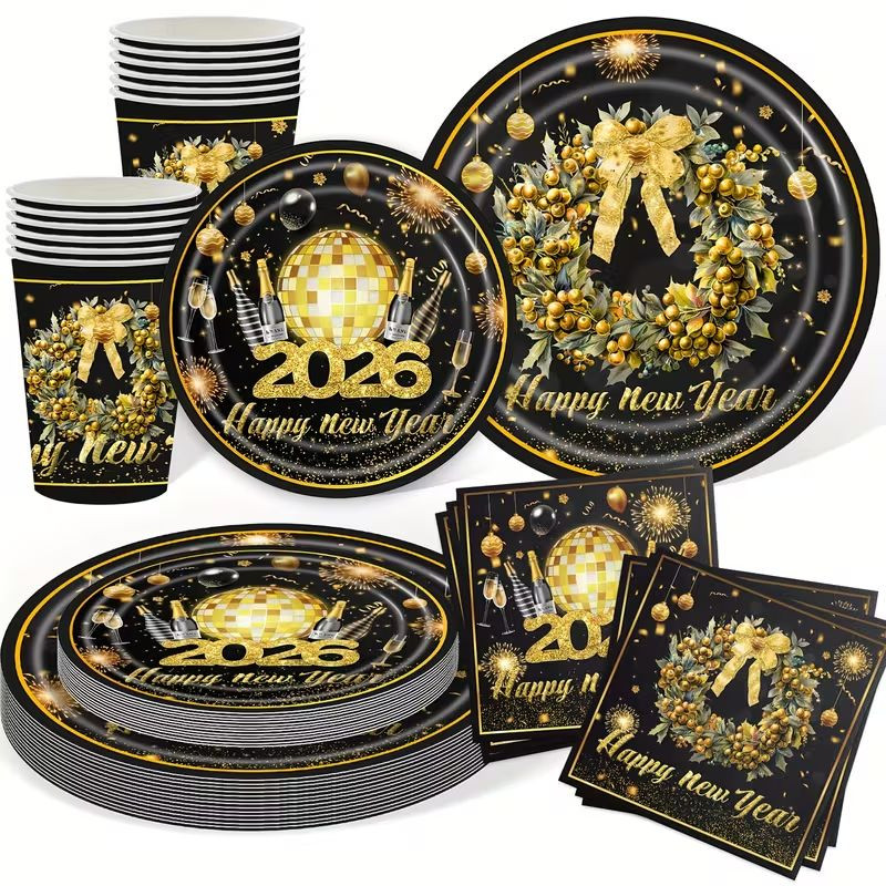 Elegáns 80 db-os 2026 Szilveszteri Parti Étkészlet Szett HT7042785