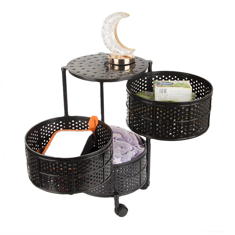 Fém tárolókocsi 3 szintes, kör alakú kosarakkal, fekete 27355