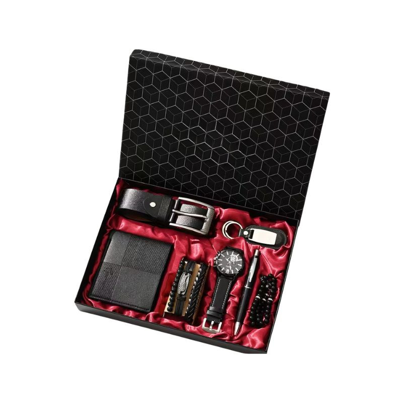 Emelje megjelenését új szintre ezzel a stílusos, 7 részes férfi ajándékszettel! A készlet elegáns, műbőr kiegészítőket és egy egyszerű, mégis kifinomult kvarcórát tartalmaz – ideális mindennapi viselethez vagy különleges alkalmakra.