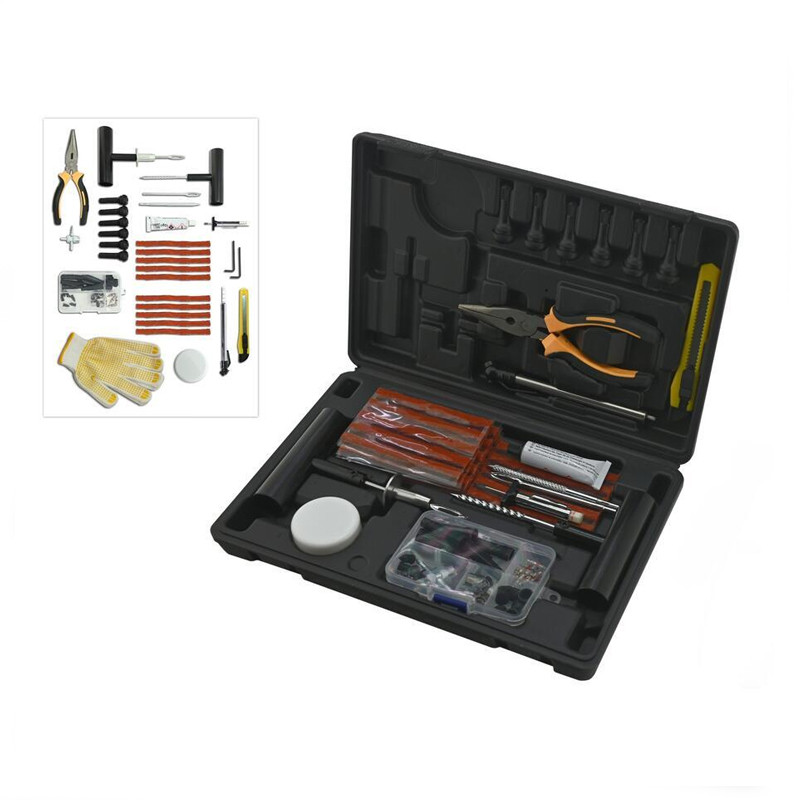 A készlet tartalmazza a klasszikus javító szálakat, minden szükséges szerszámot a javításhoz, de emellett vulkanizáló csavarokat is, amelyek még könnyebbé teszik a javítást. A vulkanizáló csavarok speciális önfúró csavarok, durva menettel és szigetelőanyag réteggel. A készlet tartalmaz továbbá más eszközöket a gumik állapotának ellenőrzéséhez, mint például a futófelület-mélység mérő és nyomásmérő, valamint kesztyűket a kényelmes használathoz, kenőanyagot, szelepkulcsot, a szelepbetéteket, szelep sapkákat és szelep hosszabbítókat.