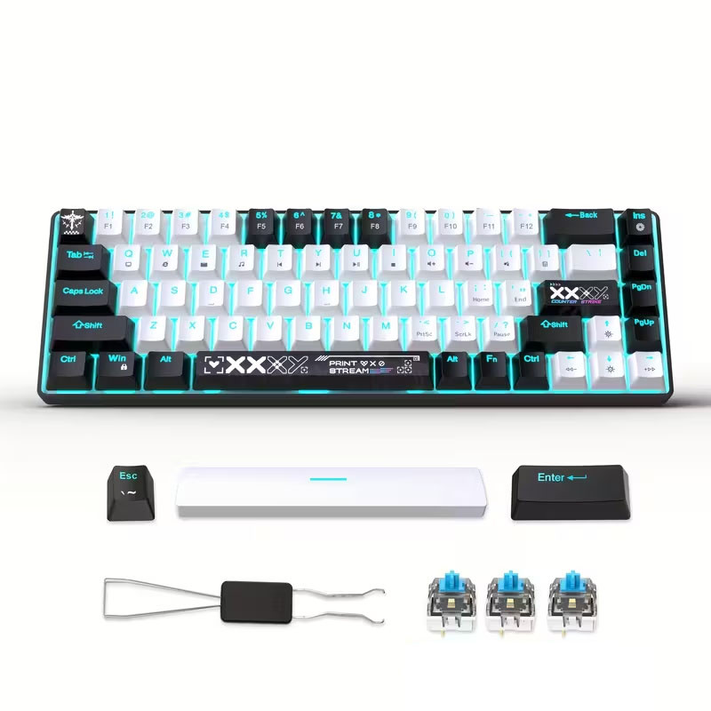 HXSJ 60% STREAM mechanikus billentyűzet fekete-fehér kék switchel MK4544490