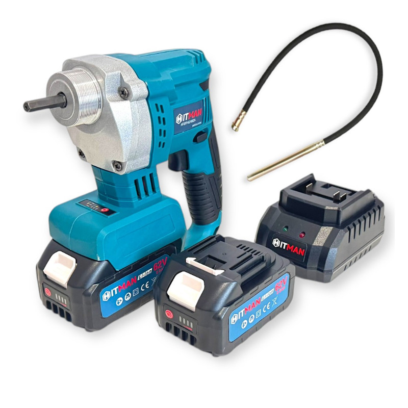 A Hitman HT-BTV-62180ZX modellhez 2 db nagy teljesítményű 62V-os Li-ion akkumulátor tartozik, amelyek lehetővé teszik a folyamatos munkavégzést egyik akkuról a másikra váltással, miközben a másik töltődik. A mellékelt gyorstöltő akár 60-90 perc alatt teljes kapacitásra tölti az akkumulátort. A csavaros csatlakozású vibrációs fej gyorsan rögzíthető és cserélhető, a masszív géptest pedig jól bírja a poros, nedves és nehéz építőipari környezetet.
