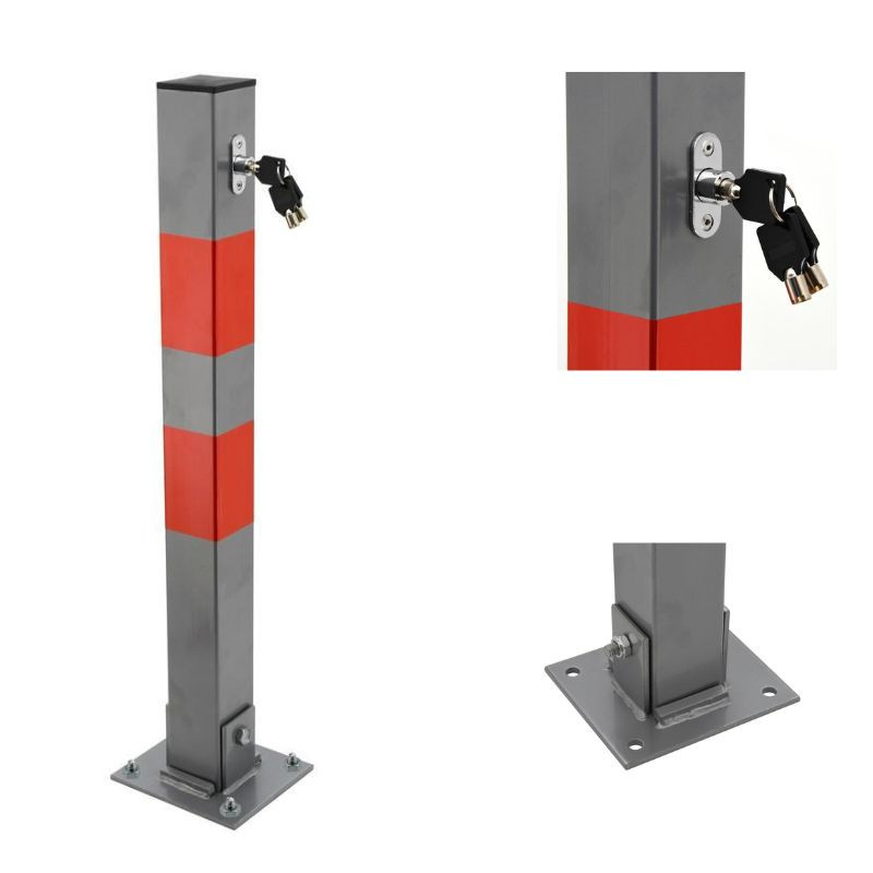 A lezárás a felső részbe épített biztonsági zárral történik, amely megbízható védelmet nyújt az illetéktelen használattal szemben. Az oszlop telepítése egyszerű: a 15 × 13 cm-es talprész szilárd alaphoz csavarozható, a szükséges rögzítőelemek a csomagban megtalálhatók.