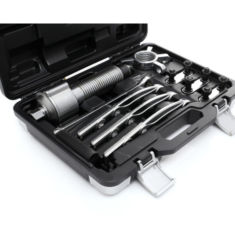 A Kraft&Dele KD10160 egy 5 tonnás kapacitású, kurblis csapágylehúzó, amely alapvető eszköz minden autószerelő és műhely számára. Segítségével gyorsan és biztonságosan eltávolíthatók különböző csapágyak, fogaskerekek és egyéb préselt alkatrészek.