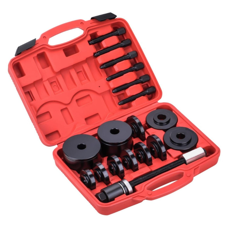 A Kraft&Dele KD12517 professzionális lehúzó és prés adapter készlet, amelyet első kerékagyak, csapágyak és perselyek szereléséhez és kiszereléséhez terveztek. Ideális választás autószerelő műhelyekbe, szervizekbe és otthoni garázsokba is, ahol fontos a precíz és sérülésmentes munkavégzés.