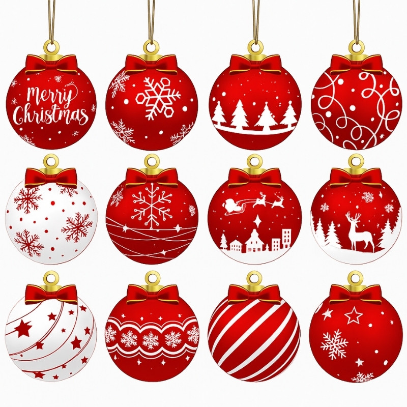 Kreatív Karácsonyi 2D Gömb Díszkészlet 12db sh25072559758438404