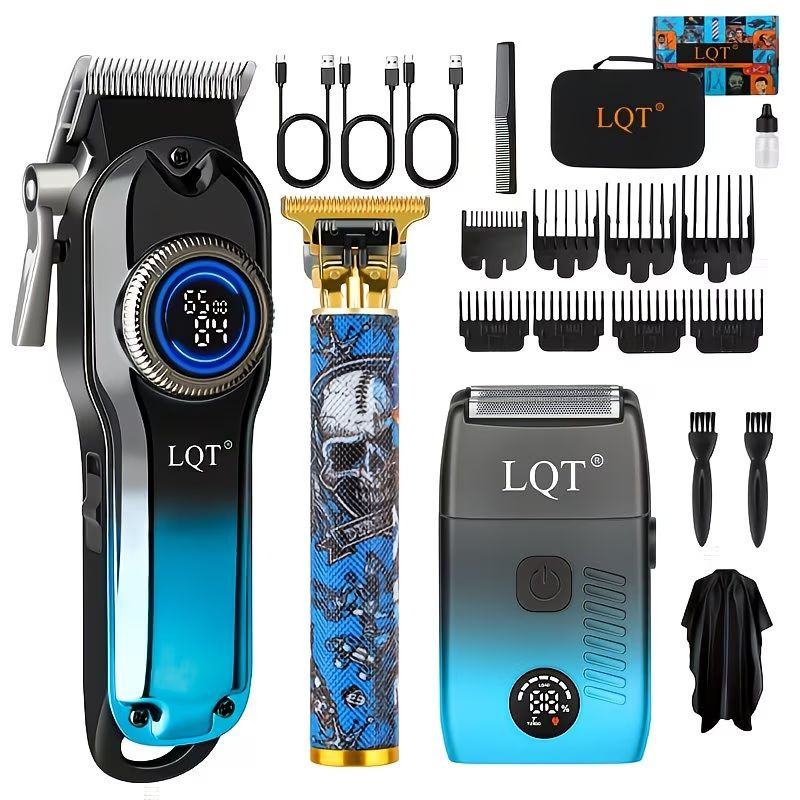 Ez az LQT professzionális ápoló készlet a modern férfi minden igényét kielégíti, legyen szó hajvágásról, szakállformázásról vagy sima borotválkozásról. A stílusos, kék-fekete gradiens mintázatú eszközök nemcsak elegánsak, hanem a legújabb technológiával vannak felszerelve a precíz és kényelmes használat érdekében. Ideális választás otthoni használatra, utazáshoz, vagy prémium ajándéknak barátok és családtagok számára.