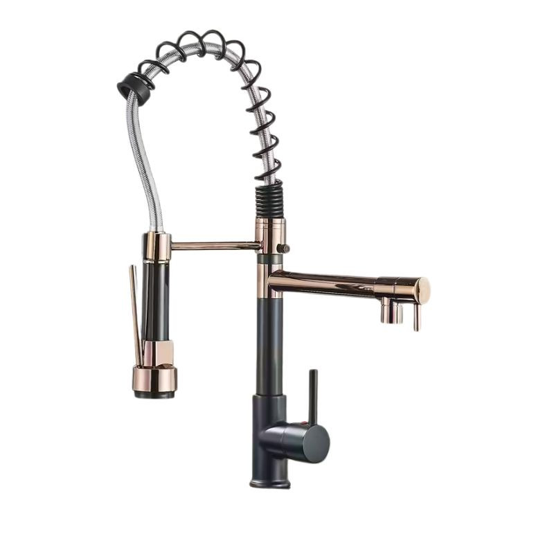 Változtassa a konyháját stúdióvá ezzel a magas ívű, egykaros csapteleppel, amely a kortárs dizájnt ötvözi az ipari funkcionalitással. Az egyedi matt fekete és rózsaarany (vagy szálcsiszolt réz) bevonat merész, luxus kontrasztot teremt. Az 50 cm magas csap a rugós, lehúzható permetezőnek és a 360°-ban forgatható kifolyónak köszönhetően professzionális teljesítményt nyújt, ideális zöldségmosó állomásokhoz és nagy mosogatókhoz.