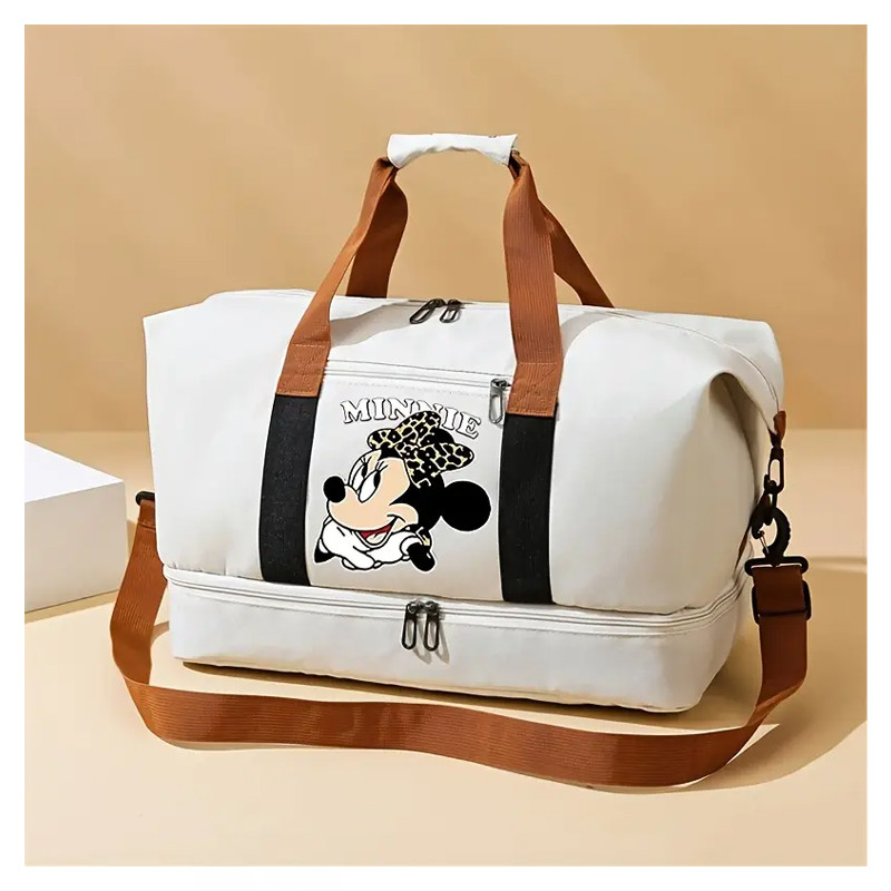 A táska levehető és állítható vállpánttal, valamint kényelmes, tartós kézifogantyúval rendelkezik. Anyaga könnyű, mégis strapabíró, ideális fitneszhez, jógához, úszáshoz, hétvégi kiruccanásokhoz vagy utazáshoz. A játékos Mickey Mouse dizájn stílusos megjelenést kölcsönöz, miközben a praktikus kialakítás a mindennapi használatot segíti.