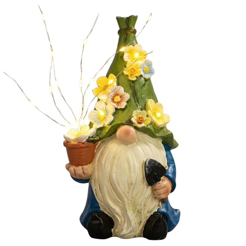 A napelemes kerti törpe lámpa dekoráció hangulatos és látványos kiegészítője lehet a kertnek, terasznak vagy udvarnak. A dekoráció egy kedves kerti törpét ábrázol, amely egy virágokkal díszített kis fát tart, a fa ágai között pedig apró fények világítanak, így sötétedés után kellemes hangulatvilágítást biztosítanak.