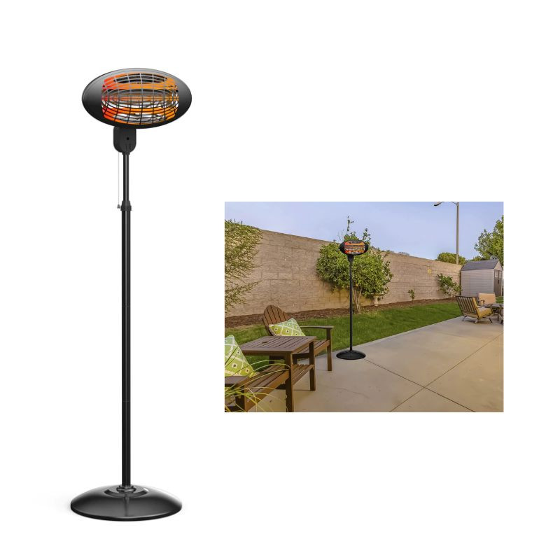 A Purline HEATY EX2000 egy 2000 W teljesítményű halogén padlófűtés, amely gyors és hatékony hőleadást biztosít otthon vagy teraszon egyaránt. Függőleges, stabil kialakításának és állítható magasságának köszönhetően sokoldalúan használható, miközben modern, fekete krómozott megjelenése bármilyen környezetbe illik.