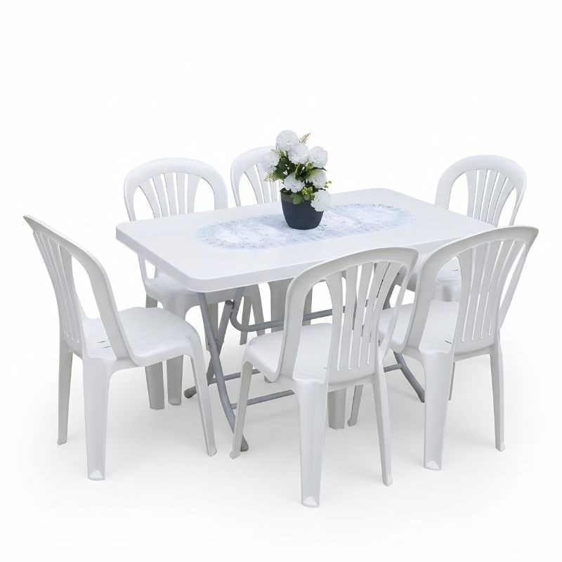 PVC kerti bútor szett asztallal és 6 székkel fehér PVC-RAT-21