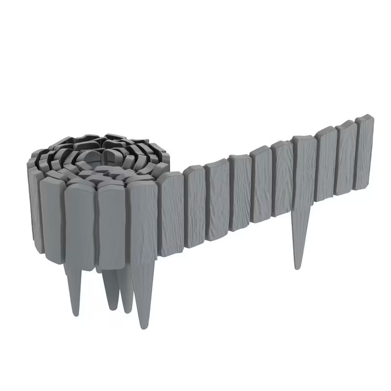 Teremtsen rendezett és elegáns környezetet ezzel a szürke színű műanyag pázsitszegéllyel A fa erezetű felület modern és mégis természetes hatást kelt a kertben A földbe szúrható tüskék és a tíz centiméteres magasság révén a telepítés rendkívül gyors és egyszerű A rugalmas kialakításnak köszönhetően könnyedén formálható így a négy darabos csomag tökéletes megoldás a legkülönfélébb kerti ágyások és utak szegélyezésére