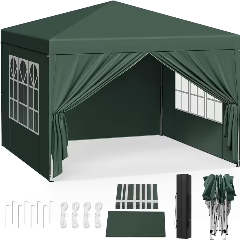 3×3 m Gazebo összecsukható sátor ablakos oldalfalakkal zöld 71MQ75001Q-Z