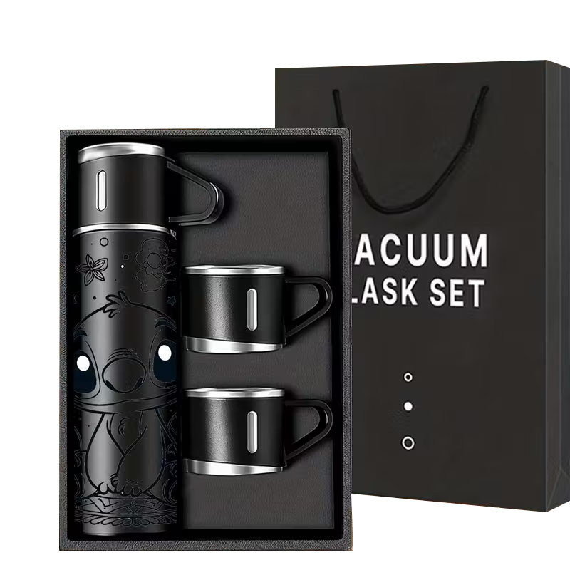 Ez a Disney Stitch vákuum szigetelt kávés termosz szett stílusos és praktikus választás mindennapi használatra, irodába, utazáshoz vagy kempingezéshez. A készlet tartalmaz egy rozsdamentes acél termoszt és 2 db csészét, így ideális közös kávézásokhoz vagy teázásokhoz.