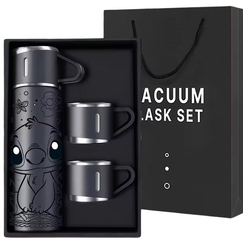 Ez a Disney Stitch vákuum szigetelt kávés termosz szett stílusos és praktikus választás mindennapi használatra, irodába, utazáshoz vagy kempingezéshez. A készlet tartalmaz egy rozsdamentes acél termoszt és 2 db csészét, így ideális közös kávézásokhoz vagy teázásokhoz.