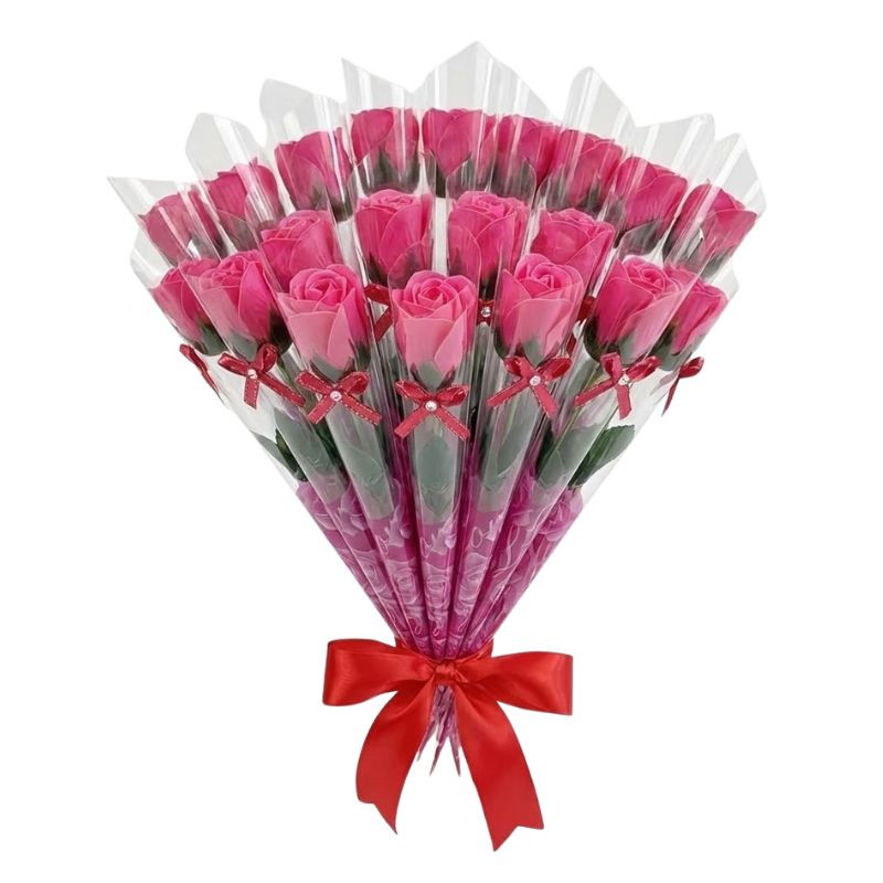 20 db Szálanként Csomagolt Illatos Szappanrózsa Díszdobozban - Sötét Rózsaszín JA3008169-RV