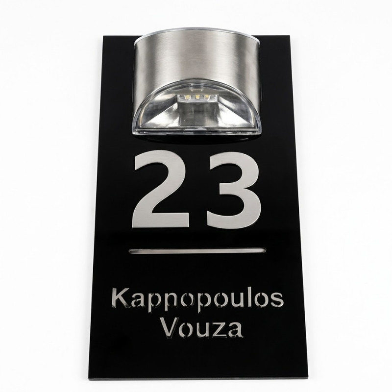 A beépített napelemes LED egység gondoskodik a cím éjszakai láthatóságáról kábelek és külső áramforrás nélkül.