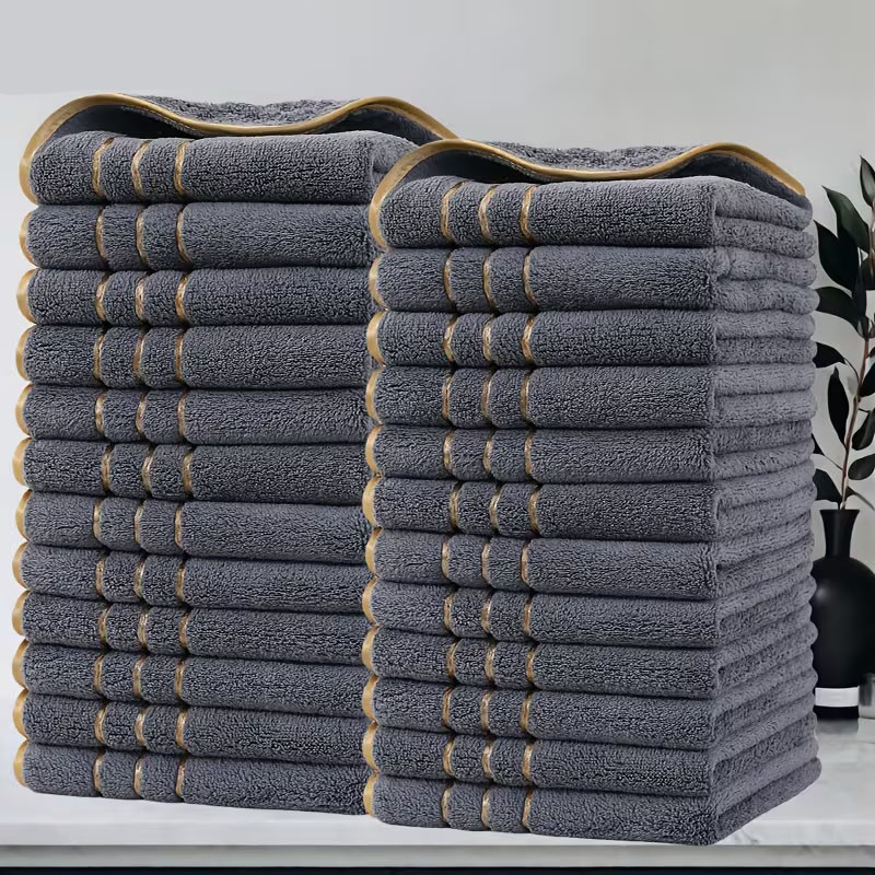 Stílusos és praktikus mikroszálas törölköző szett, amely ideális fürdőszobába, konyhába, vendégek számára, vagy akár otthoni és szállodai használatra. A vintage aranycsíkos design elegáns megjelenést kölcsönöz a szettnek, miközben minden darab funkcionális és gyorsan száradó.